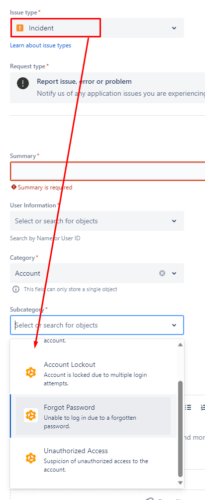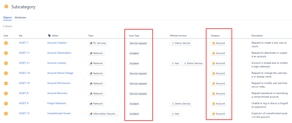 Here’s where the magic happens. Link your Asset entries to specific issue types within Jira. For instance, you can associate certain categories and subcategories with particular issue types like “Incident,” “Request,” or “Change.”