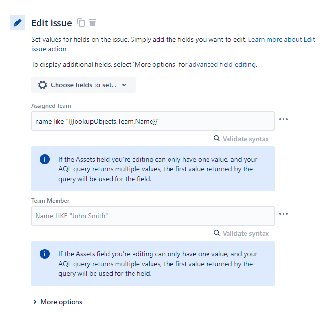 Filter issue scope (AQL): Category = ${customfield_10200.label} AND “Issue Type” = ${issueType.label}