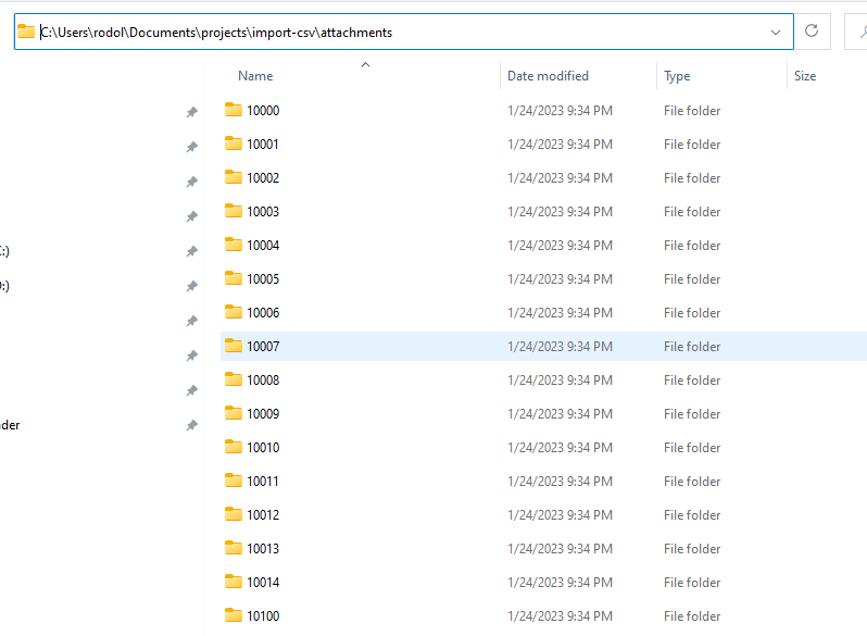 The path to the attachments folders needs to be set as the same one provided in the first script, in my case: C:\\Users\\rodol\\Documents\\projects\\import-csv\\attachments
