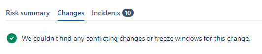 - Changes: This section indicates whether there are any conflicts with the change. Conflicts could be schedule overlaps with other changes, resource clashes, or anything that could hinder the successful implementation of the change.