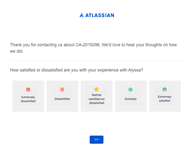 This is an example of a satisfaction survey that Atlassian sent me a few years ago, and the result can be very similar to this using SurveyMonkey (or an equivalent).