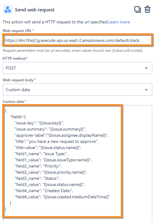 By configuring this Jira automation rule and including the payload, you’ve established a mechanism to send data to your AWS Lambda function, enabling communication between Jira and Slack.