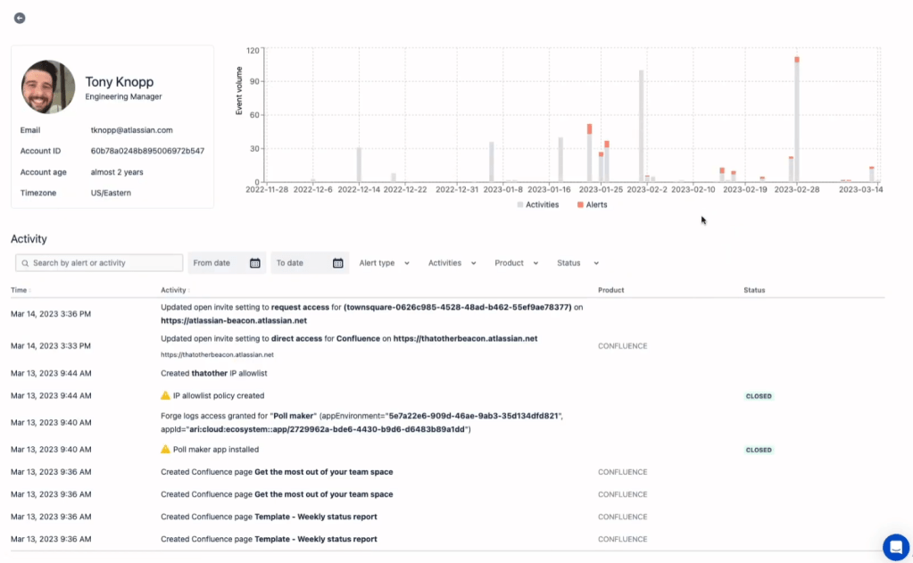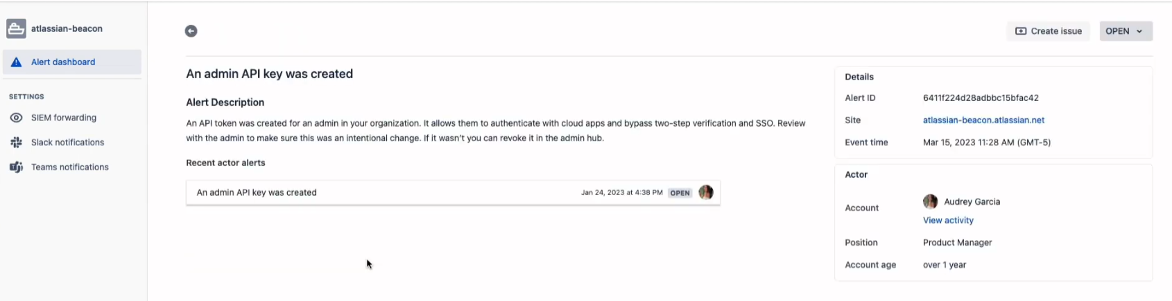 Managing a multitude of cloud applications can be an overwhelming task, and failing to monitor them effectively can expose your business to significant risks. Beacon is here to change that. Think of it as Atlassian’s “system of intelligence” – an advanced engine designed to provide extended detection and response capabilities natively within Atlassian Cloud products.