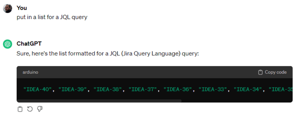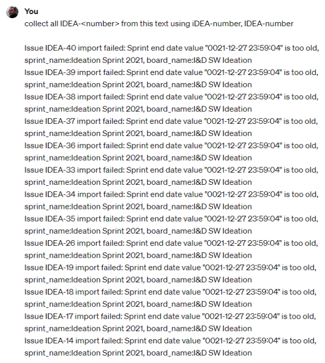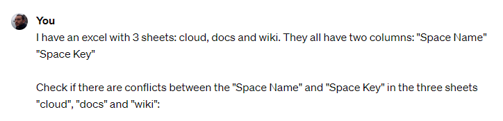 Example 1: This is AI helping me analyze Excel sheets to detect duplicate projects/space keys