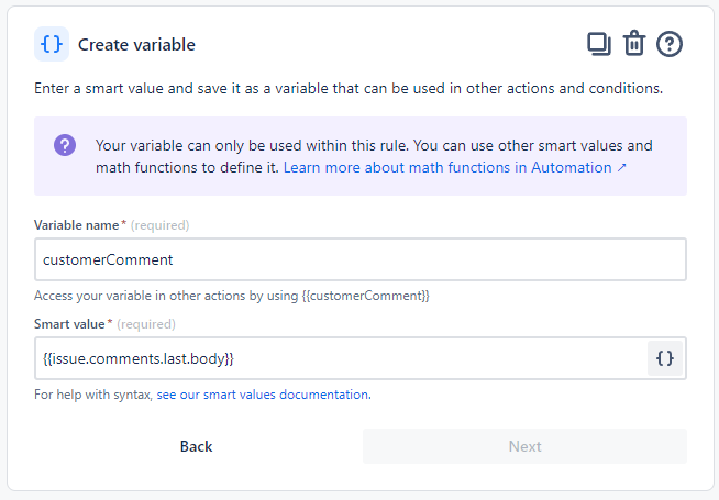 - When: Rule is triggered on – The rule is triggered when a comment is made on an issue. This is the event that starts the automation.