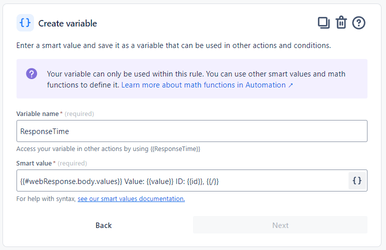 Web Request URL: https://your-domain.atlassian.net/rest/api/3/issue/{{issue.key}}/comment