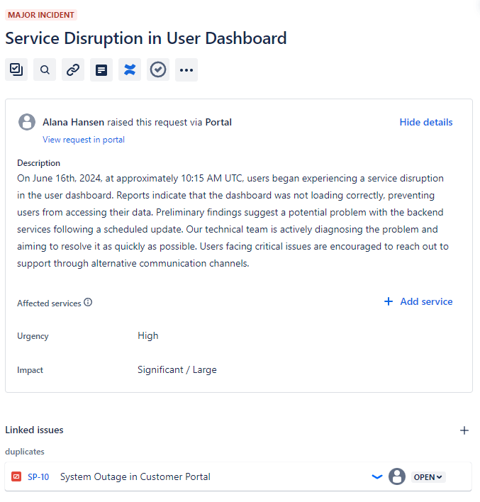 - Status Synchronization: Ensure that the status of linked incidents is synchronized with the major incident, keeping all related parties informed about the progress.