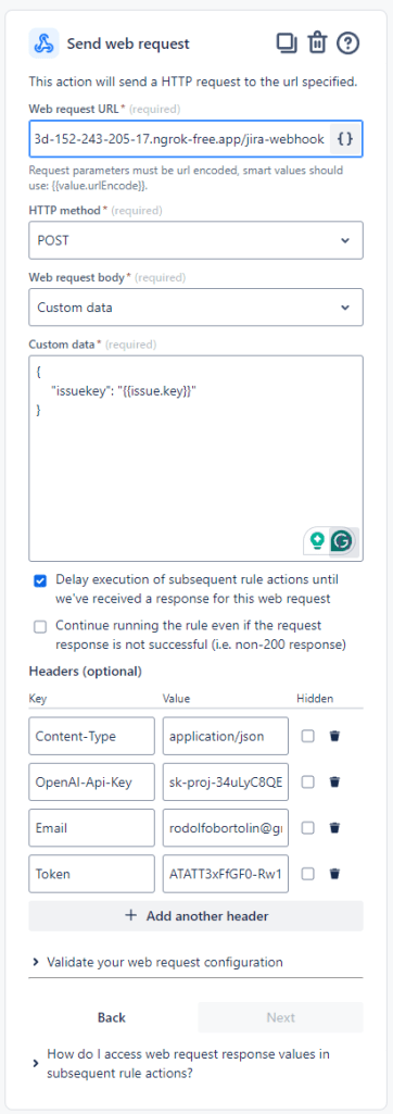 - Set Up Automation: Create a rule in Automation for Jira to trigger the script when an incident is created or updated.