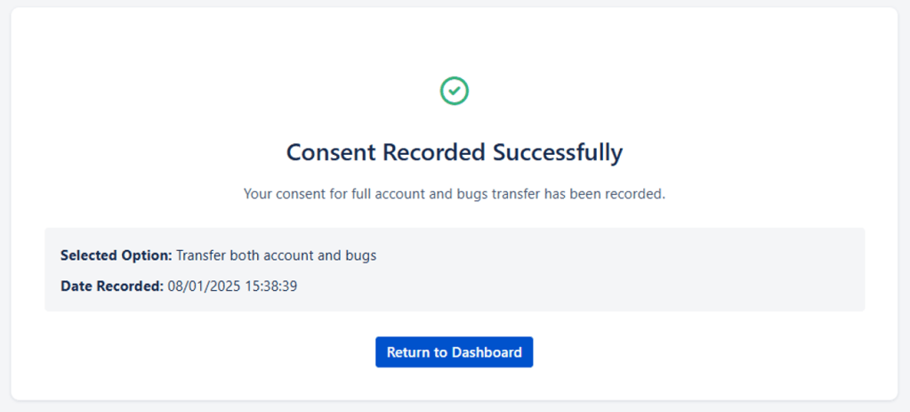 - Partial Consent: Transfer only bugs and associated data, without account migration